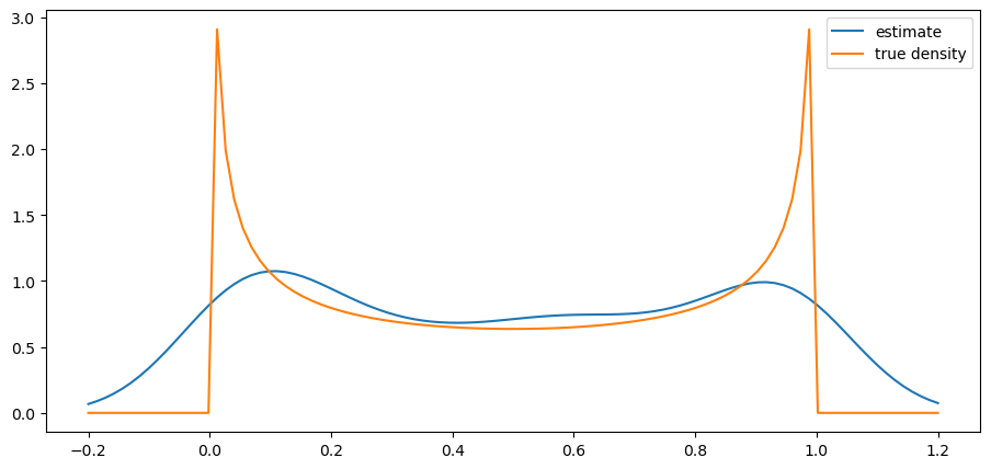 def plot_kde(ϕ, x_min=-0.2, x_max=1.2):