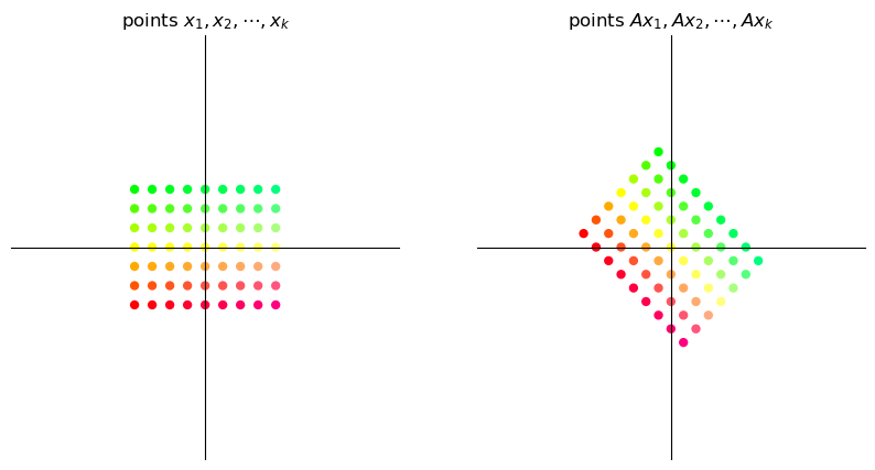 Below we visualize transformations by thinking of vectors as points instead of arrows.