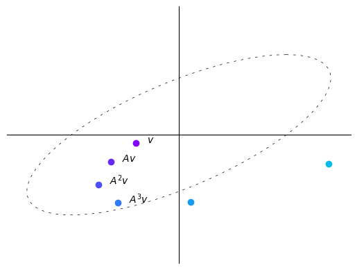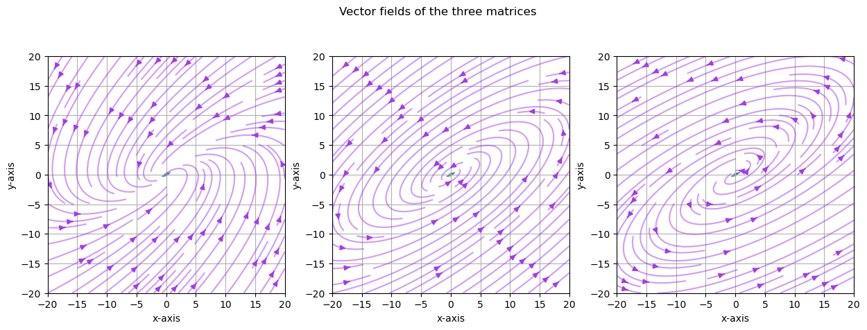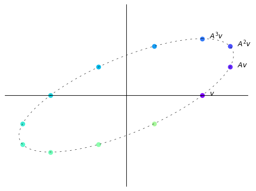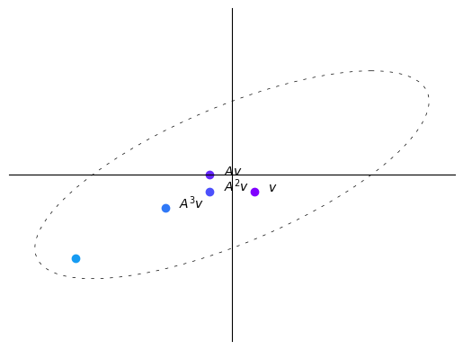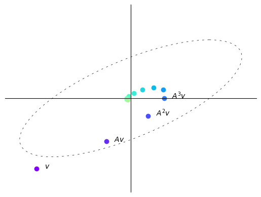The vector fields explain why we observed the trajectories of the vector \(v\) multiplied by \(A\) iteratively before.