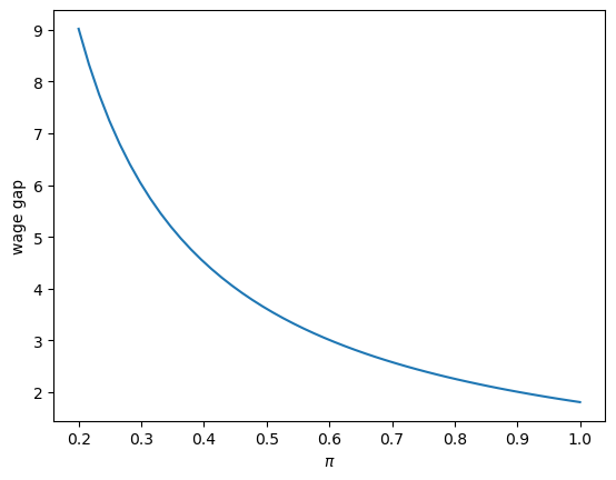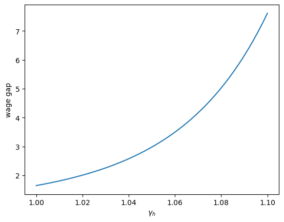 Notice how the initial wage gap falls when the rate of growth \(\gamma_c\) of college wages rises.