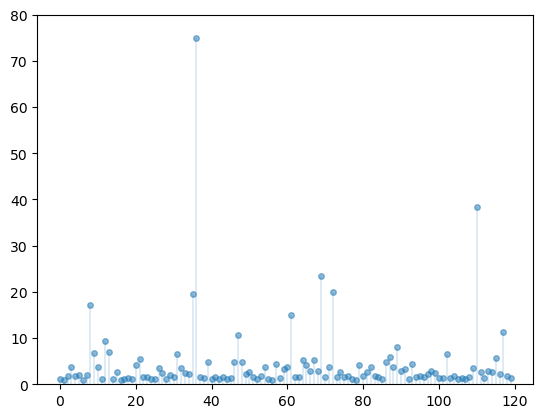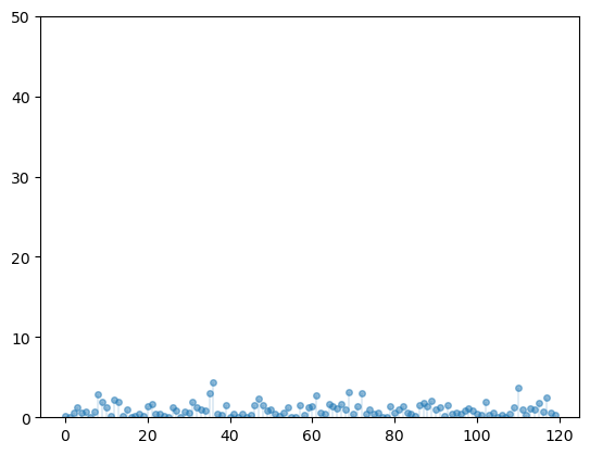 ax.plot(list(range(n)), data, linestyle='', marker='o', alpha=0.5, ms=4)