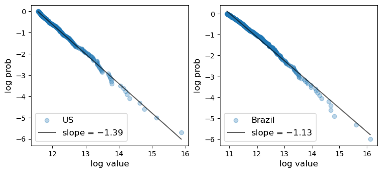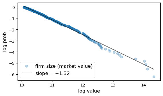 (The value of the tail index \(\alpha\) is plausible given the data [Gabaix, 2016].)