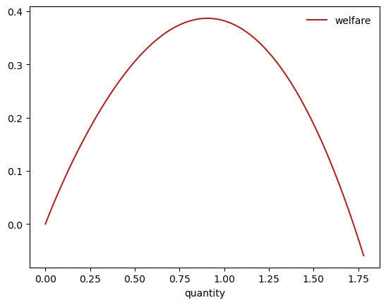 Here is a Python function that evaluates this social welfare at a given quantity \(q\) and a fixed set of parameters.