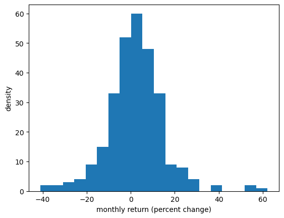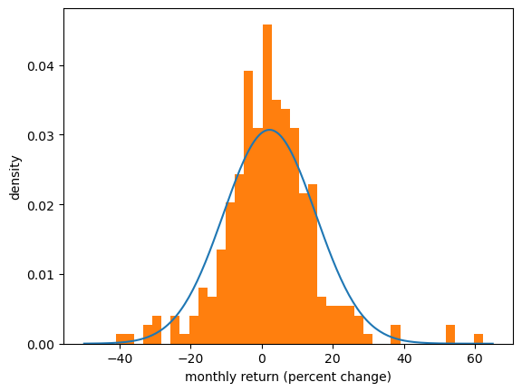 ax.set_xlabel('monthly return (percent change)')