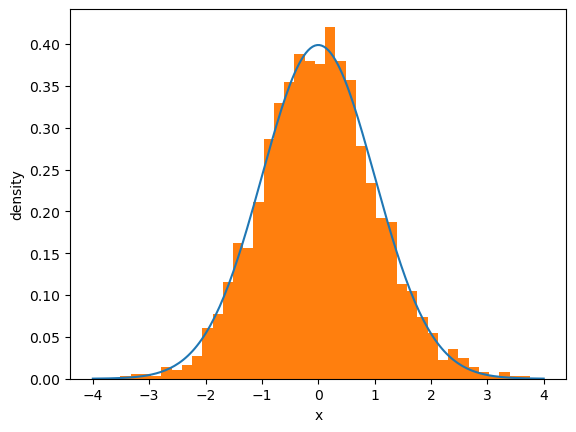 • then we histogram them and compare with the density.