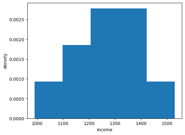 We can histogram the income distribution we just constructed as follows