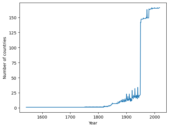 In fact we can use pandas to quickly check how many countries are captured in each year