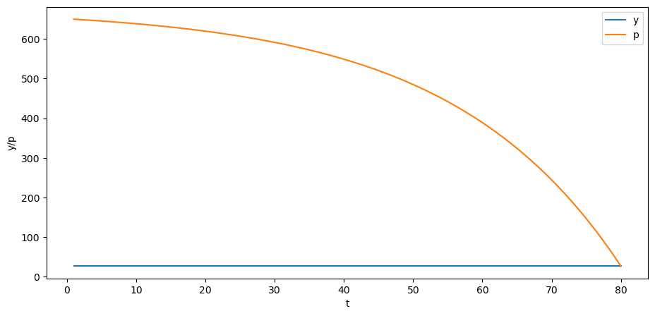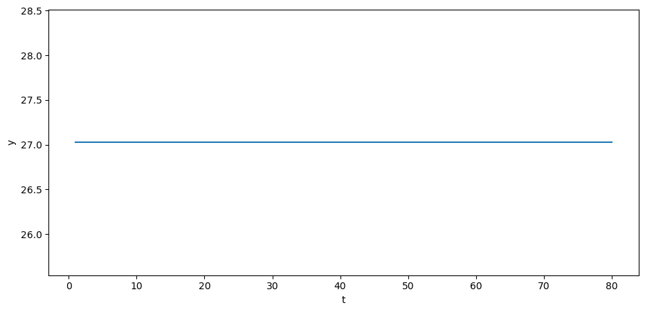 If we set the initial values to \(y_{0} = y_{-1} = y^*\), then \(y_{t}\) will be constant: