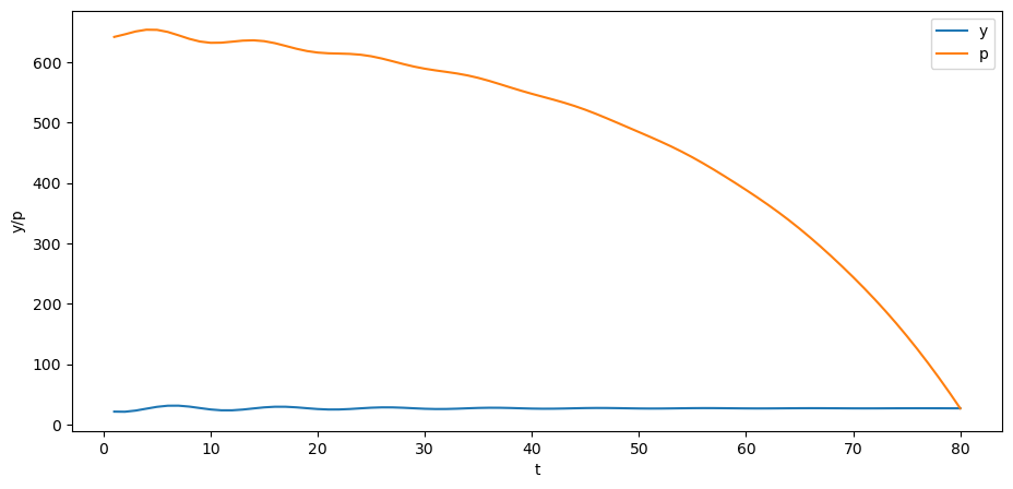 If \(y_t\) is GNP at time \(t\), then we have a version of Samuelson’s model of the dynamics for GNP.