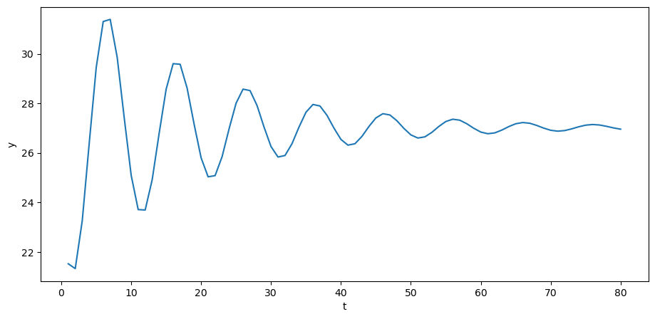 where we assume that \(y_0\) and \(y_{-1}\) are given numbers that we take as initial conditions.